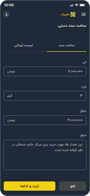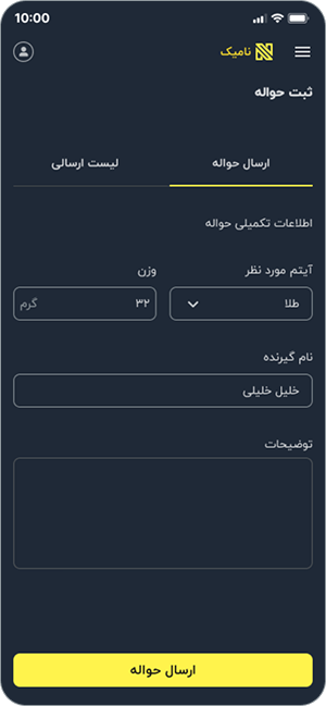 با ابزار ارسال حواله نامیک میتوانید بدون نیاز به ساخت اسناد فیزیکی و ارسال آنها از طریق روشهای مختلف، به سادگی حوالههای خود را به مشتریان یا نرمافزارهای حسابداری ارسال کنید و از آرشیو کامل آنها بهرهمند شوید.