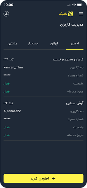 بنده از تیم نامیک تشکر میکنم. ارسال فیشها و خرید و فروش آنلاین خیلی برام با ارزش هست. تراز خیلی خوب کمک میکنه صورت حساب هایم را ببینم. فروشم بیشتر شده است.